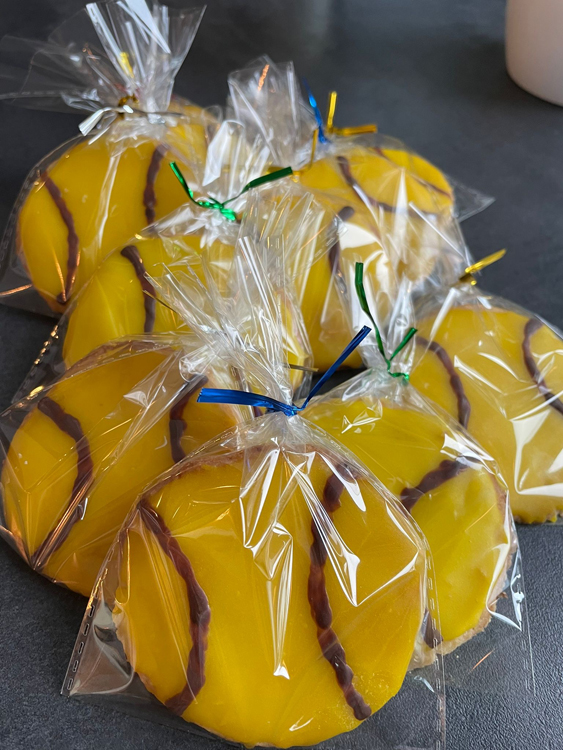 Die diesjährige Weihnachtsüberraschung waren selbst gebackene Weihnachtskekse in Form eines Tennisballs.