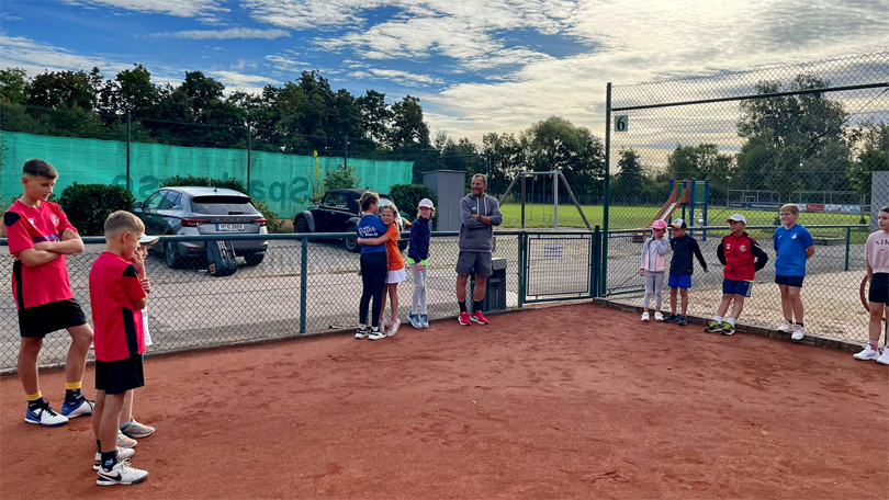 Anschließend wurden die Kinder in zwei Gruppen aufgeteilt und absolvierten bei jedem der Trainer eine Einheit auf dem Tennisplatz. Dort stand die Technik der Grundschläge (Vorhand und Rückhand), Volleys und Aufschläge im Fokus.